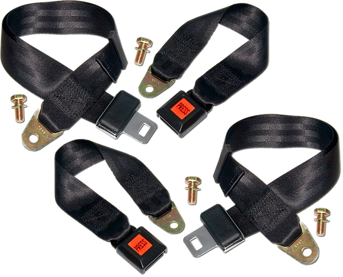 Replace existing damaged or worn Belts perfectly... Set of 4, includes two shoulder harness belts and two lap belts for rear jump seats (all new hardware included). Replace worn belt (using factory fittings)... Complete!